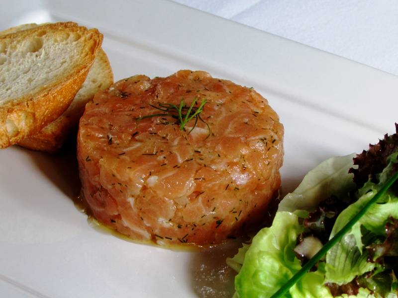 Para iniciar o jantar, uma harmonização tipicamente francesa, a Mise en bouche, um Tartar de salmão com torradas, será acompanhada de um rosé do Vale do Rhône, o Héritage.