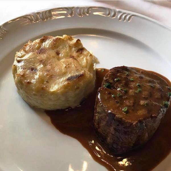 São eles os tintos Forte Ambrone Etichetta Nera IGT 2014, Toscana, Itália e o português Marques de Borba Vinhas Velhas 2017, Alentejo DOC, que farão companhia aos Tournedos de filé mignon ao molho Roquefort, com maçã caramelizada e batatas gratinadas.