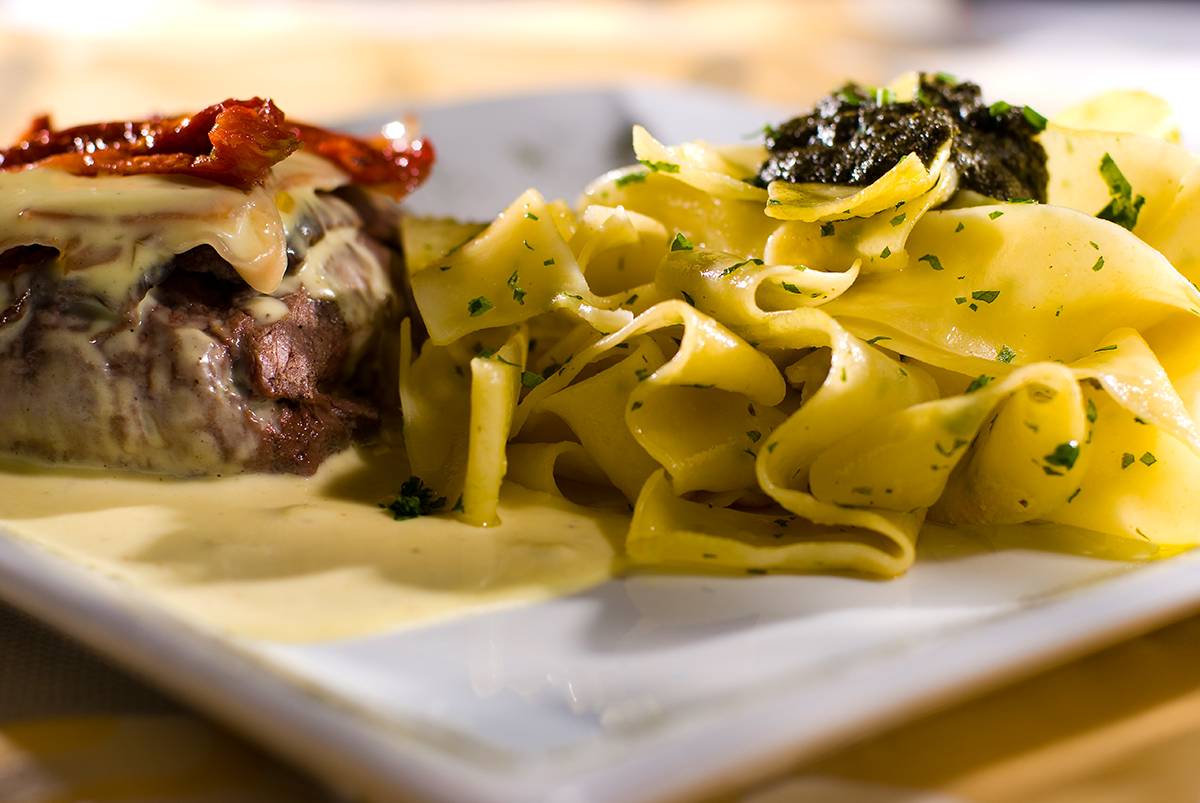 A casa fabrica boa parte dos produtos que utiliza, do tomate seco à linguiça calabresa. Assim como também faz as massas que estão incluídas no cardápio, que tem agora, como companhia, o Mignon di Parma (R$ 42), que já fazia sucesso no cardápio desde um tempo. Este prato é elaborado com “pappardelle artesanal, preparado com pesto de rúculas e nozes, acompanhado por um paillard de filé mignon recheado com queijo cremoso, tomate seco e presunto de parma no acabamento” – conforme a descrição que recebi.
