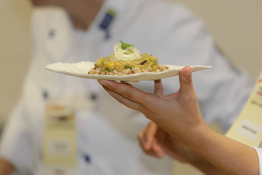 E para que ninguém fique com tanta água na boca, publico abaixo duas receitas dentre os tantos pratos elaborados pelos chefs nas aulas do Mesa ao Vivo Paraná. Uma de quem veio de fora. Trata-se do Cuscuz de siri, pinhão e palmito pupunha, que Janaína Rueda preparou no primeiro dia do evento. De fácil execução e de sabor marcante.
