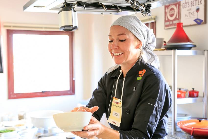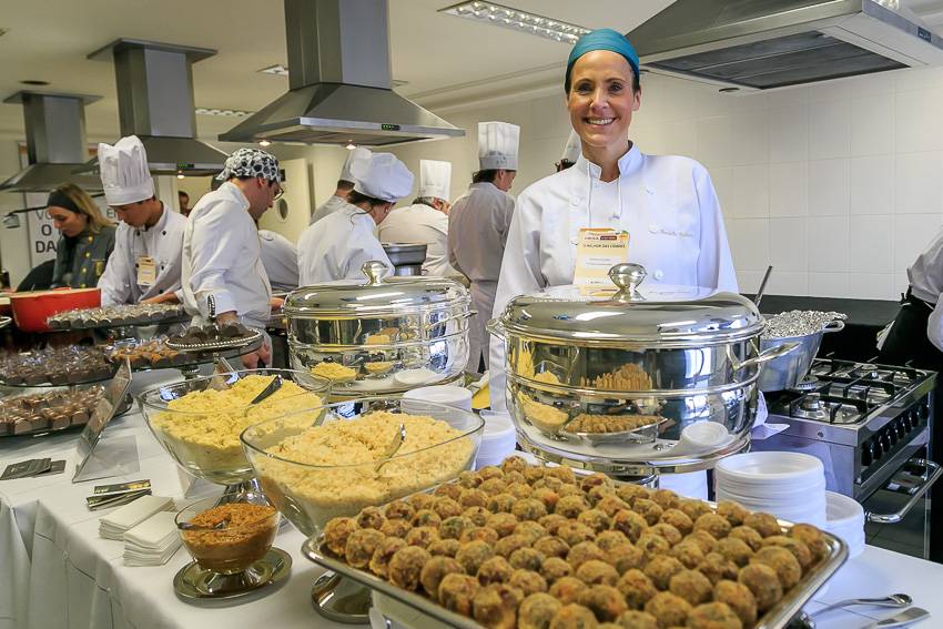 E para que ninguém fique com tanta água na boca, publico abaixo duas receitas dentre os tantos pratos elaborados pelos chefs nas aulas do Mesa ao Vivo Paraná. Uma de quem veio de fora. Trata-se do Cuscuz de siri, pinhão e palmito pupunha, que Janaína Rueda preparou no primeiro dia do evento. De fácil execução e de sabor marcante.