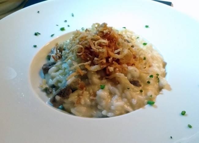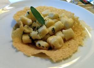De prato principal pedi um Nhoque com manteiga de sálvia na cestinha de parmesão (R$ 39), gostoso, correto, embora sem novidades. Mas confesso que fiquei de olho nos companheiros de mesa que pediram o Ceviche com crispy de batata doce (R$ 31). O visual era incrível, pois ele vem servido dentro de um meio coco fresco. A batata, como diz o nome do prato, não vem pedaçuda e sim em finas tiras crocantes. E aí, consumido o prato, a turma da mesa não resistiu e pediu para quebrar o coco, aproveitando para comer os pedaços. Houve quem pedisse também o Risoto de picanha com cebola crocante (R$ 45), também aprovado.