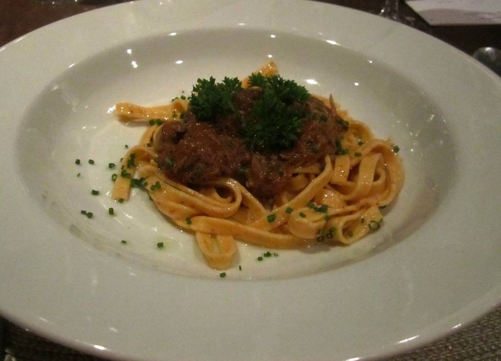 Fettuccine de pimenta calabresa com ragu de cordeiro.