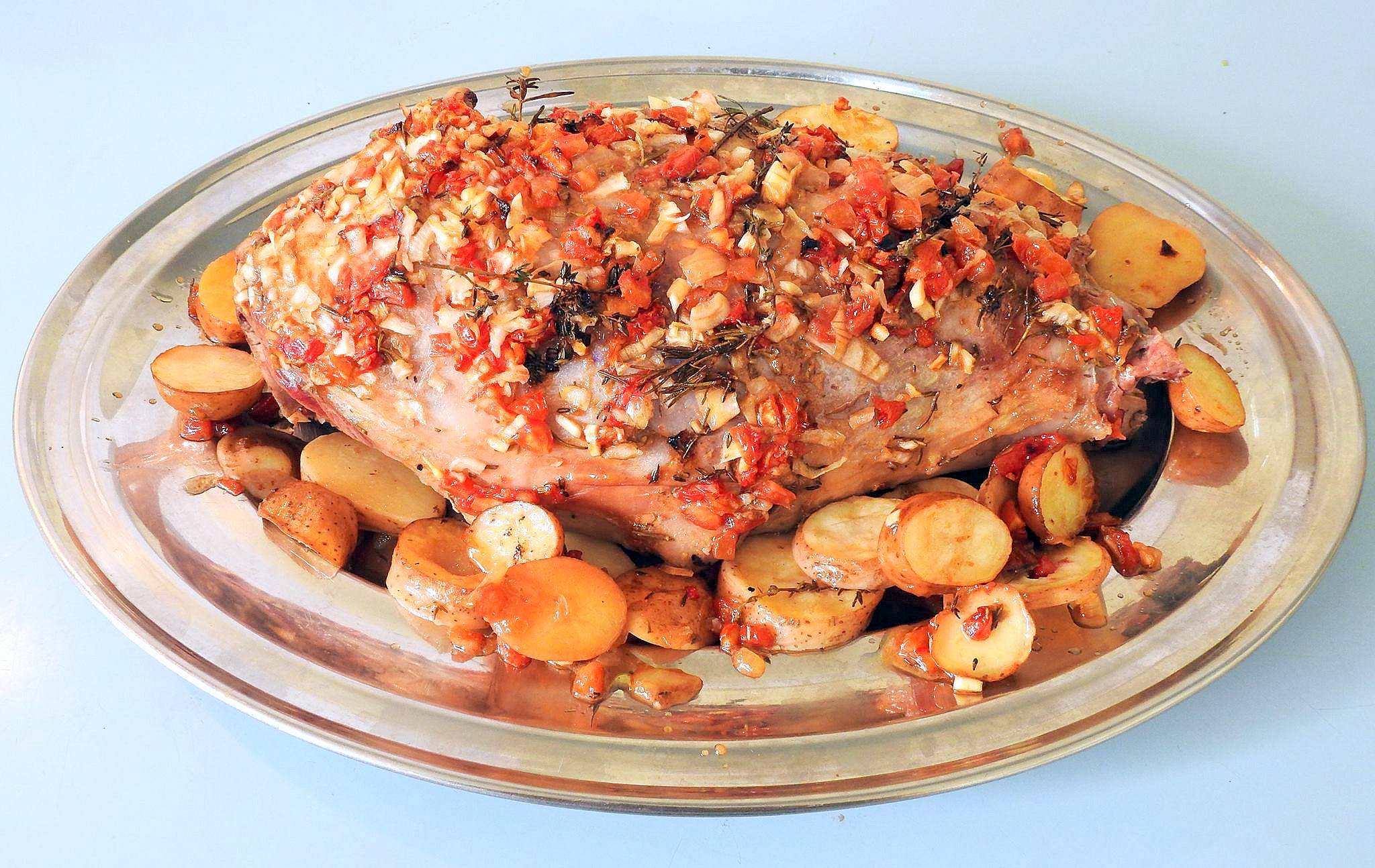 Pernil de cordeiro, vamos encarar? Almoço de família, domingueira, 12 pessoas.
