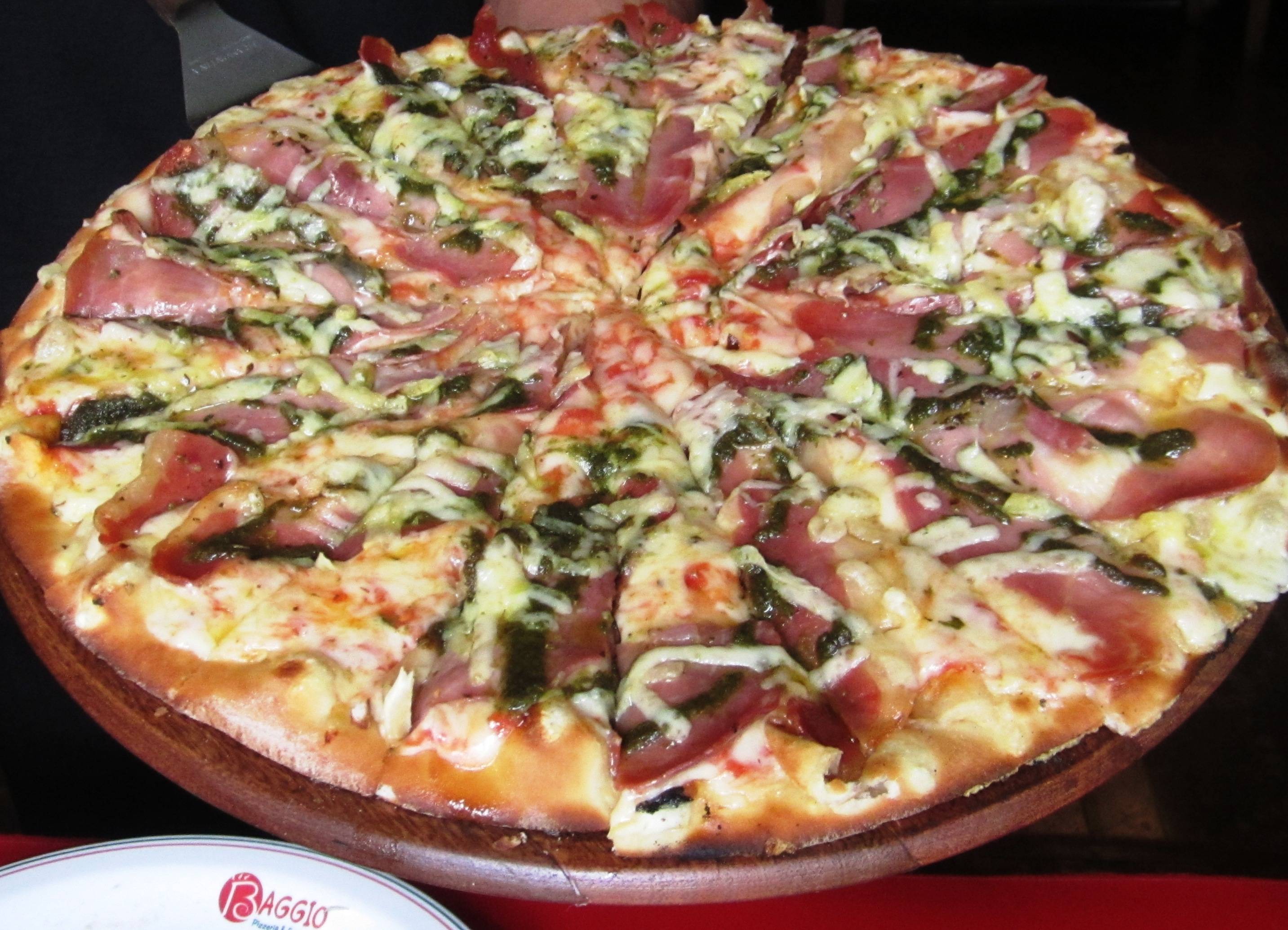 Prima di Parma, com muçarela, parmesão, presunto Parma e molho pesto, foi a vencedora do concurso de pizzas entre clientes da Baggio.