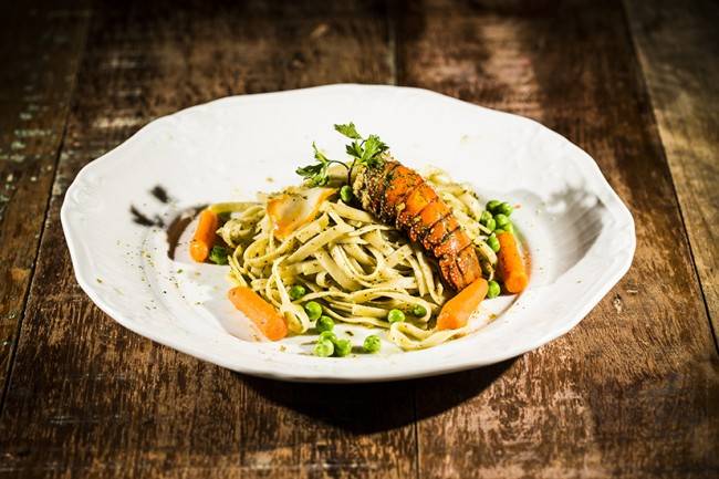 Para o prato principal, a escolha fica entre duas massas, o Tagliatelle al mare (com lagosta e lagostins) e o Tagliarini al funghi (com galeto assado e ervas aromáticas)