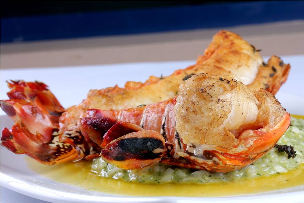 Lagosta grelhada ao molho de laranja, servida com risoto de pesto – uma das atrações do Festival da Lagosta do Vin Bistro.