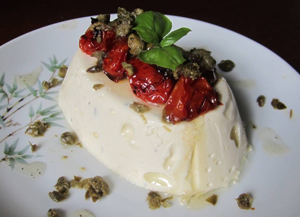 Panna cotta al gorgonzola naturale con pomodori arrosto