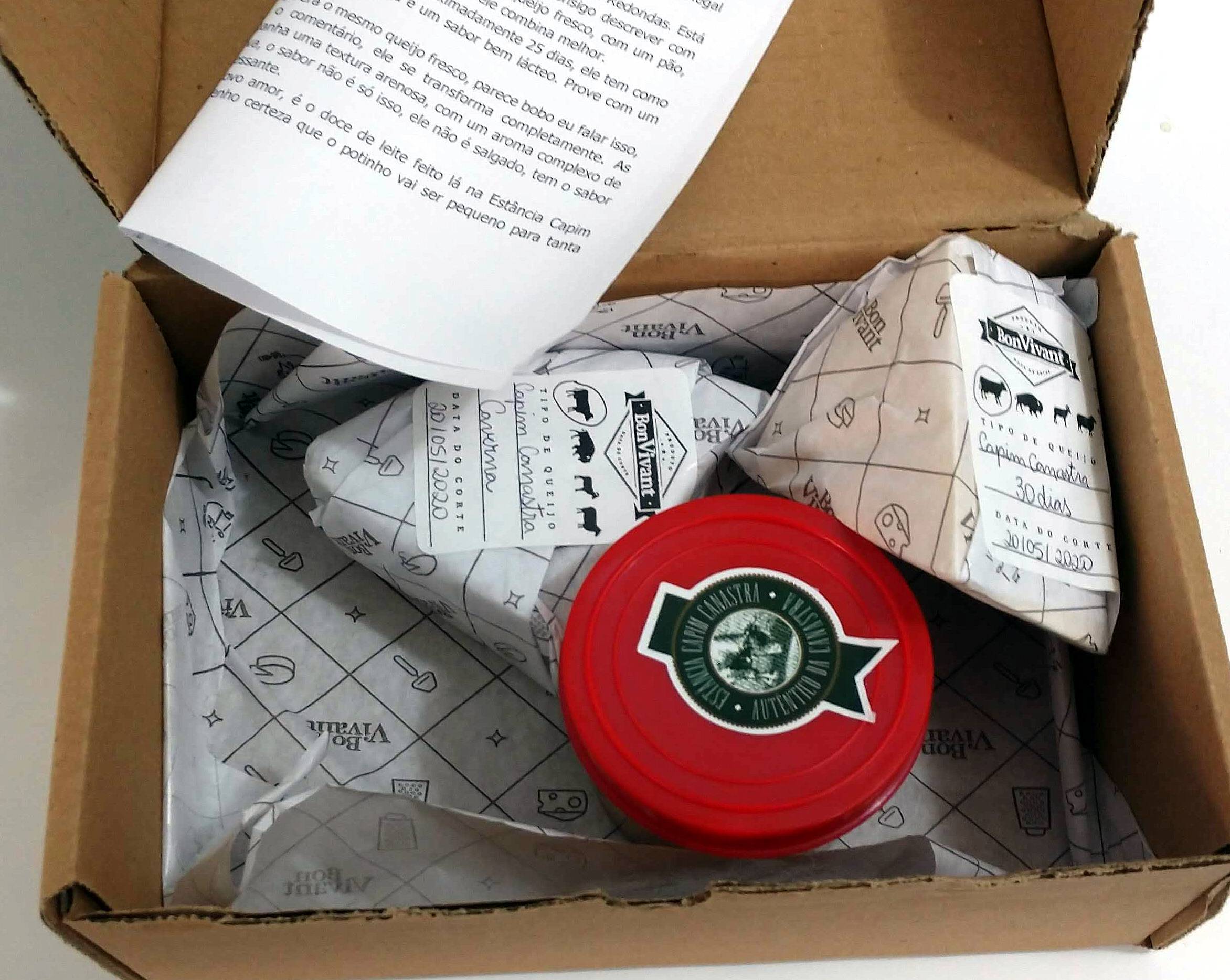 Na remessa sempre vai mais algum item, que normalmente se pode consumir junto com queijos, como um pão, uma geleia ou um embutido.