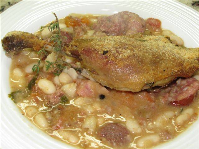 O Cassoulet, com a coxa de pato confitada em cima – o prato principal do jantar da Confraria do Armazém.