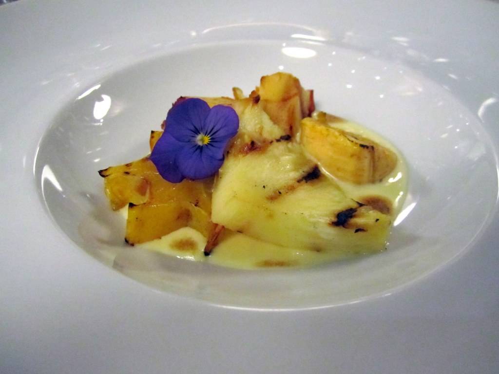A sobremesa, por Gabriela Freire, foi Frutas grelhadas com zabaglione de balsâmico branco. Ideal e perfeita para o final feliz.