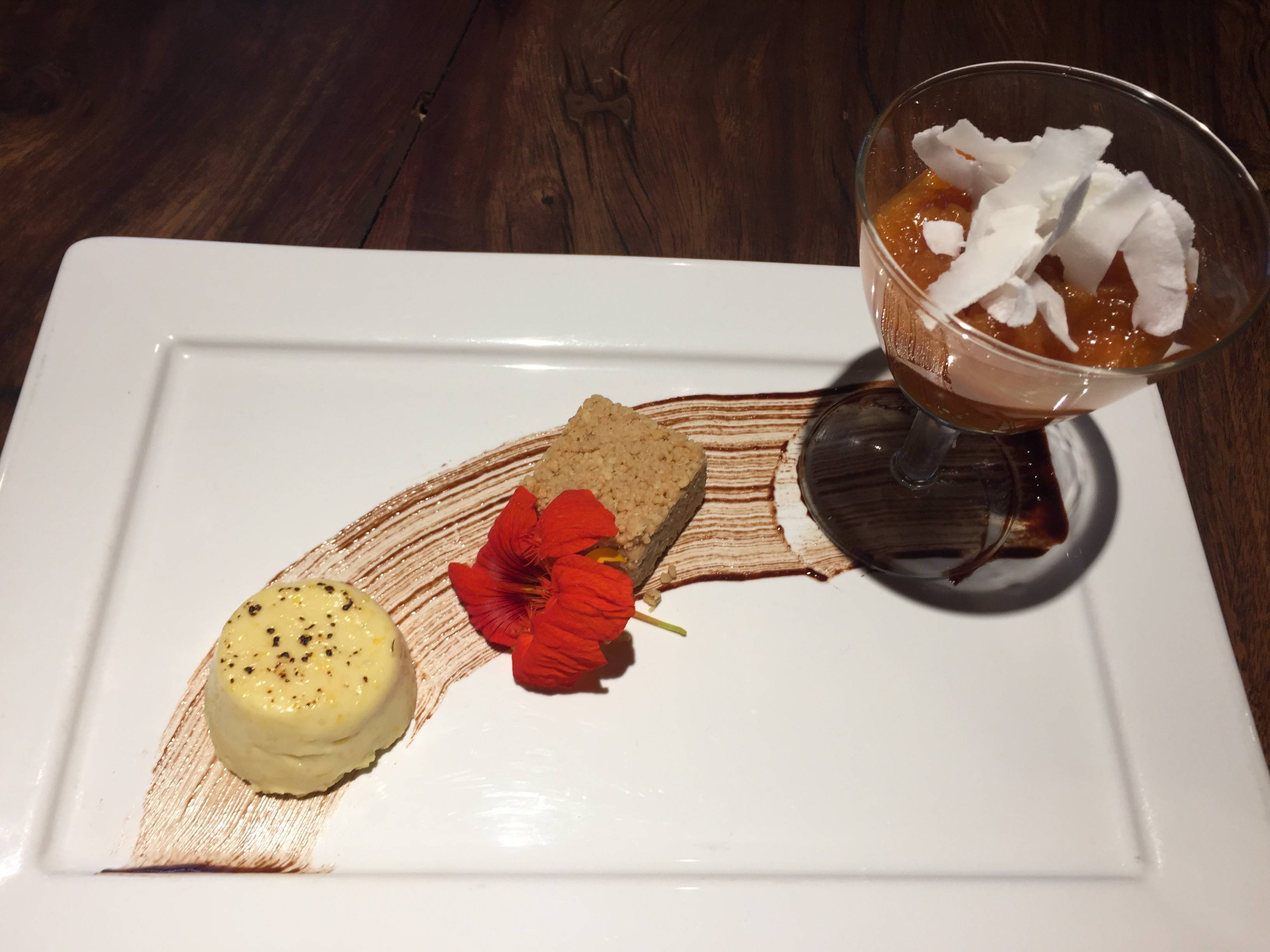 De sobremesa, Pudim de claras aromatizado com limão siciliano e creme anglaise, um oportuno Trio Julino (pamonha, paçoca e doce de abóbora) ou Tarte tatin.