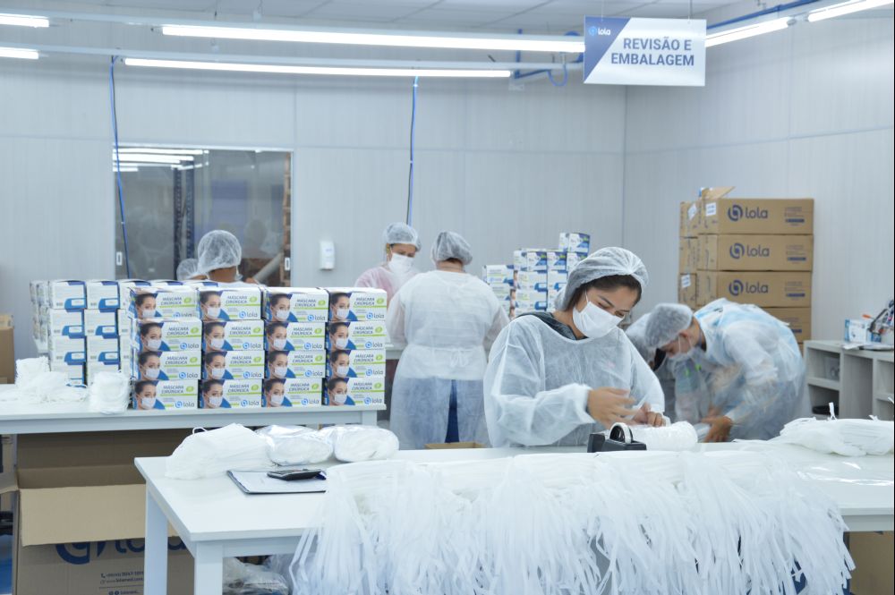 O novo negócio está contribuindo para a autossuficiência do Brasil em máscaras. Antes da pandemia do novo coronavírus, a dependência externa nesse item era de praticamente 100%.