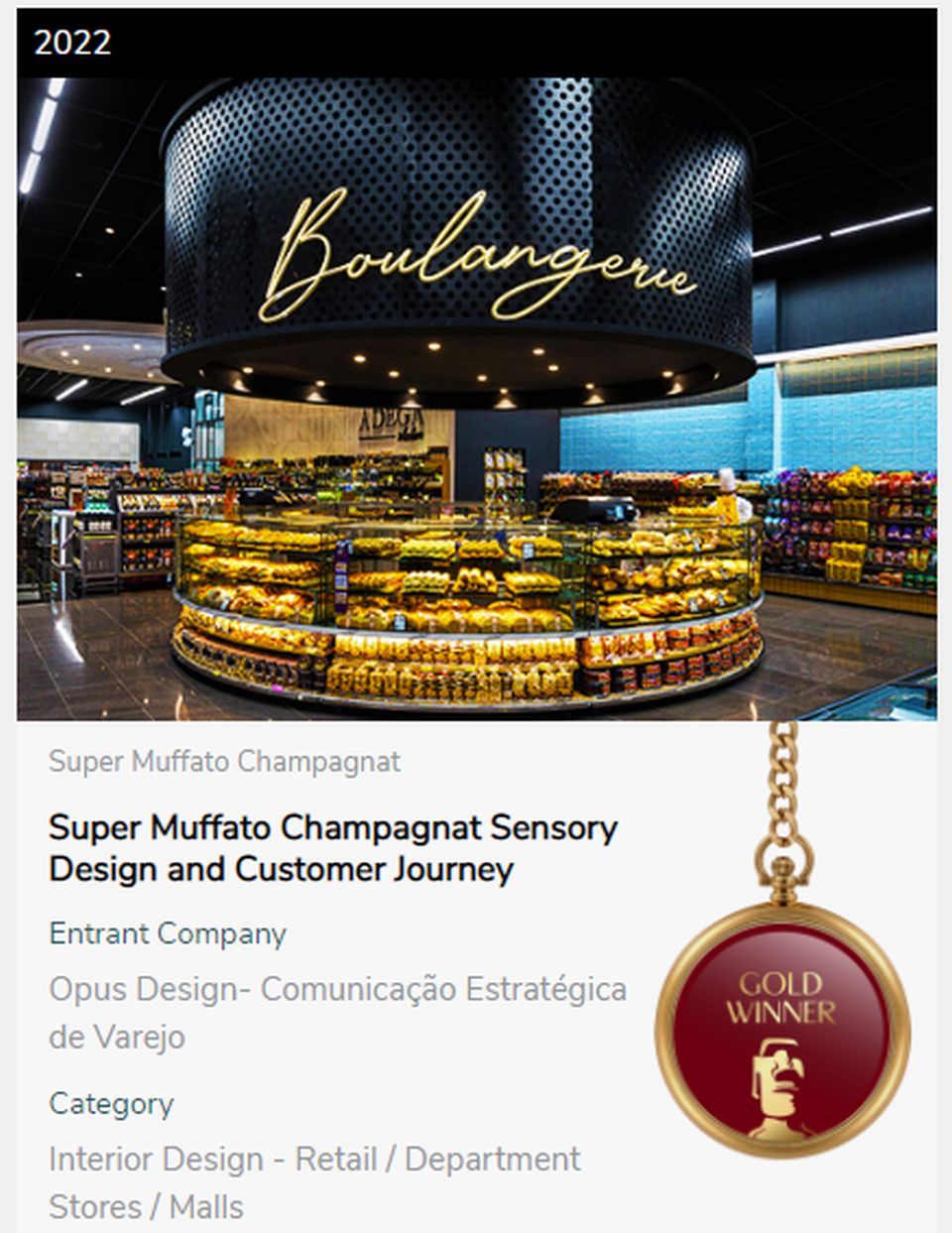 Inaugurado em maio, o Super Muffato Champagnat venceu um dos principais prêmios internacionais de arquitetura, o Titan Property Awards na categoria design de interior de lojas de departamento e de varejo. O projeto, que tem o conceito gourmet, é do escritório Opus Design e foi aclamado por 15 jurados de diferentes países.