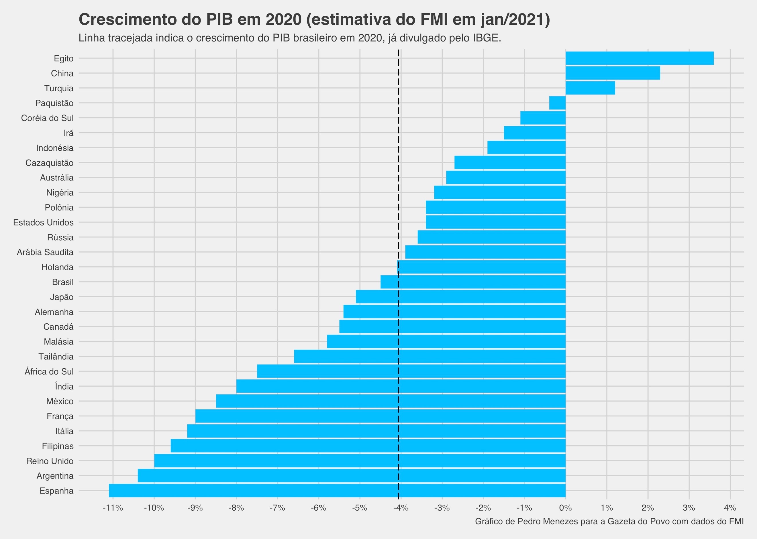Há poucos dias, o IBGE divulgou o PIB brasileiro em 2020, com queda de 4,1% no ano. Muita gente destacou a notícia como ruim. Discordo por dois motivos: as expectativas eram muito piores e as principais economias latino-americanas registraram recessões ainda mais profundas.