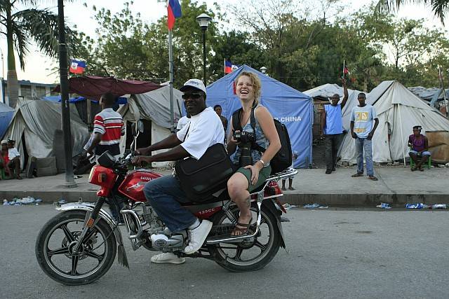 Porto Príncipe está “inchada” com uma quantidade enorme de estrangeiros. Só para a ONU, trabalham 12 mil pessoas, incluindo os 2.200 militares brasileiros. Somando os funcionários de ONGs, são mais cerca de 10 mil. Toda essa gente estimula o mercado de serviços local — como a contratação de um veloz mototaxi por esta canadense. Limpeza e aluguel de casas são outros exemplos. Tudo pago em dólar. Só não dá para deixar de negociar. Mesmo que o produto ou serviço for “bon bagay”, ou seja, coisa fina, em geral vale a metade do que o pedido.