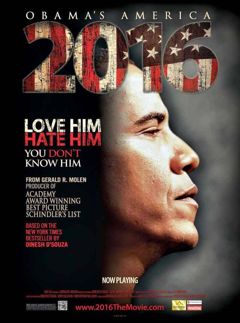 O filme 2016 – Obama’s America se tornou o documentário de viés republicano mais lucrativo da história do cinema norte-americano. Inspirado no livro de Dinesh D’Souza, a obra tenta imaginar como será os Estados Unidos em 2016, se Barack Obama for eleito para o segundo mandato.