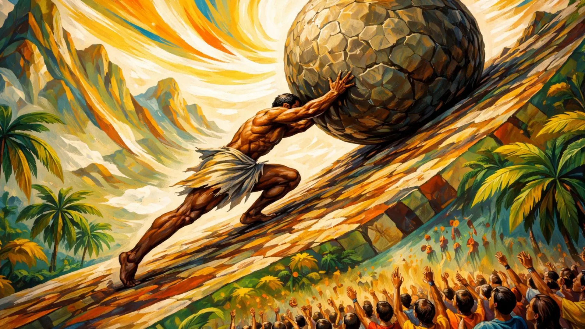 E no dia seguinte e no outro e no outro a multidão se reuniu para ensinar Sísifo a rolar a pedra montanha acima.