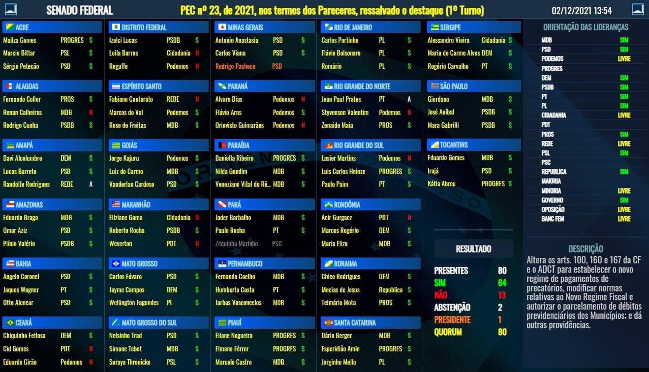 “Minha atuação na PEC 23/2021 foi no sentido de aprovar o aumento dos benefícios sociais sem, no entanto, permitir que houvesse calote dos precatórios, pois, na primeira parte da votação, votei sim ao texto-base sem a regra do subteto (que conduz ao calote dos precatórios), ao passo que, na segunda parte, votei contra a regra do calote”, afirmou Arns.
