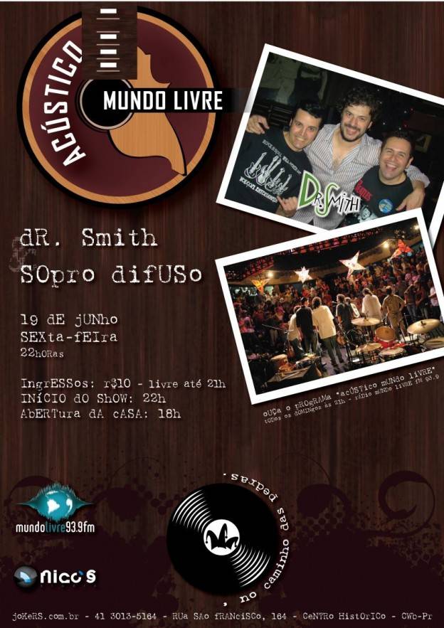 Acústico Mundo Livre no Jokers. Desta vez sobem ao palco Dr. Smith e Sopro Difuso.