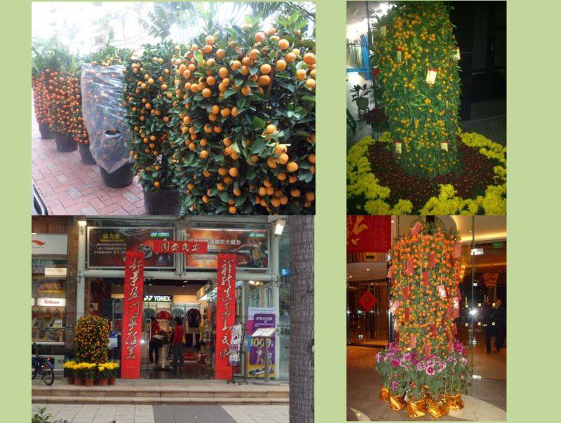 A explicação para os pés de tangerina é outra: além de ter a cor dourada e alegre do sol, a pronúncia também lembra a da palavra ouro: tangerina = JU ZI / ouro = JIN ZI.