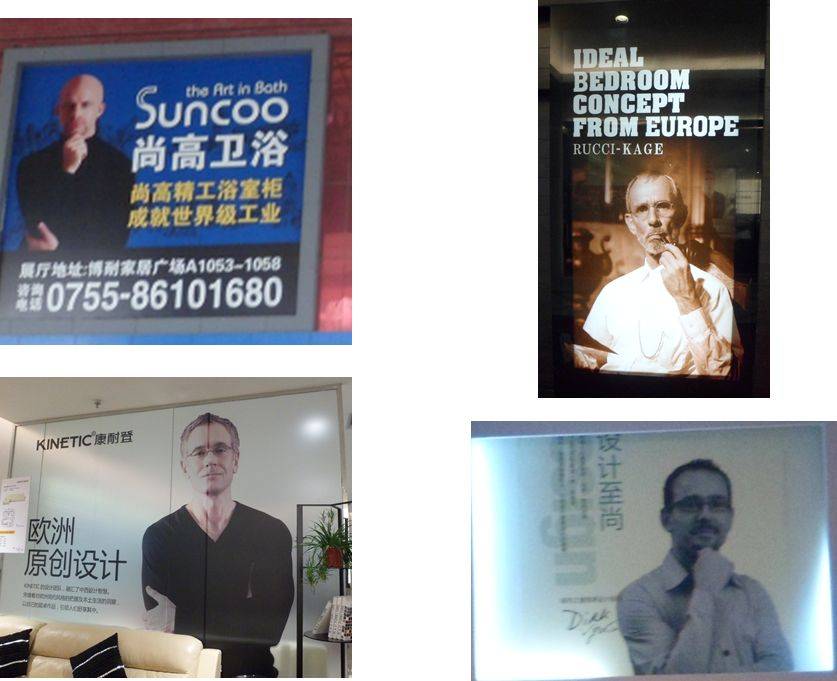 A concorrência não poderia ficar para trás e decidiu encontrar seus próprios garotos propaganda, entre seus 40 e 50 anos, com pinta de intelectuais. Depois, bastou apenas fotografá-los com a mão no queixo, fazendo cara de inteligente, para tentar convencer os chineses da qualidade dos móveis.