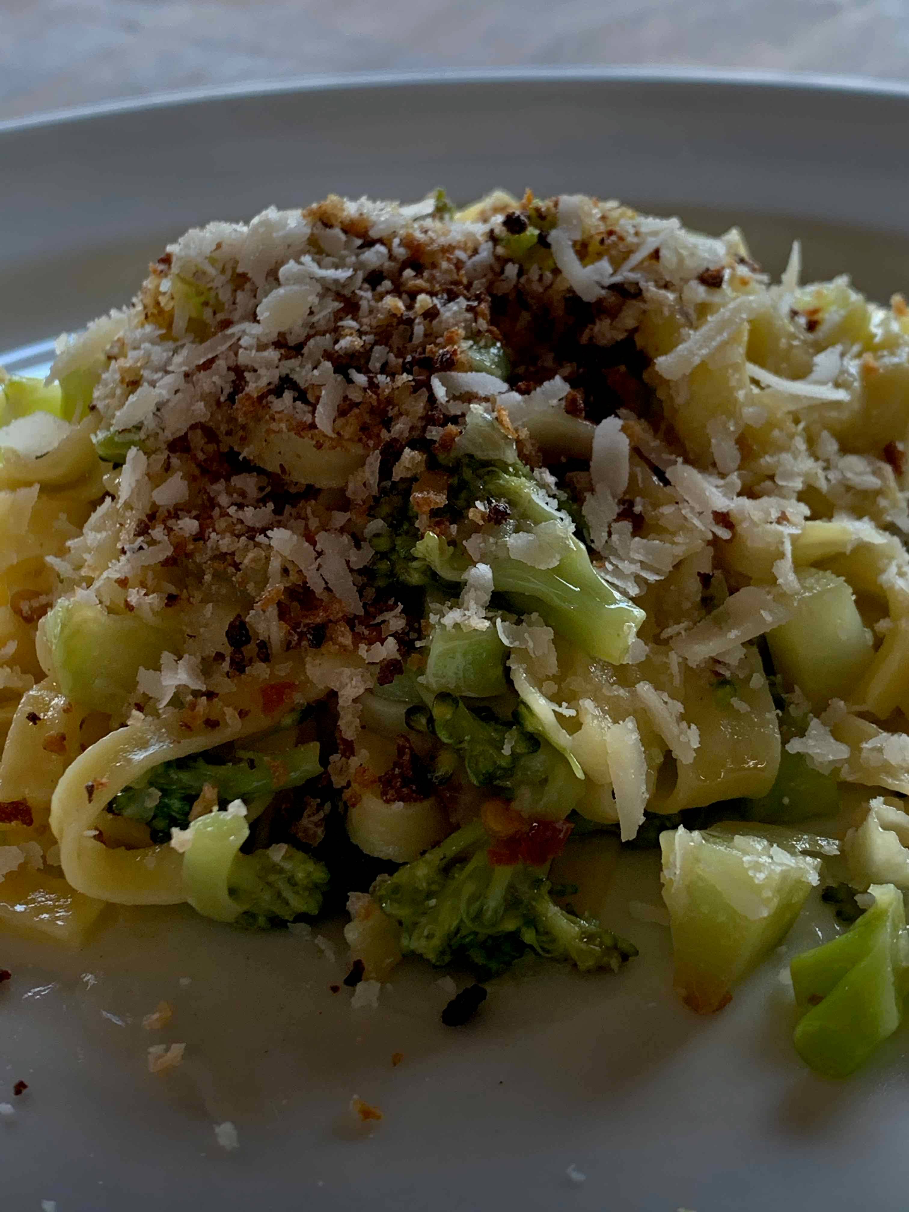 Sirva imediatamente, coberto com farinha de rosca grosseira e muito parmesão ralado fino.